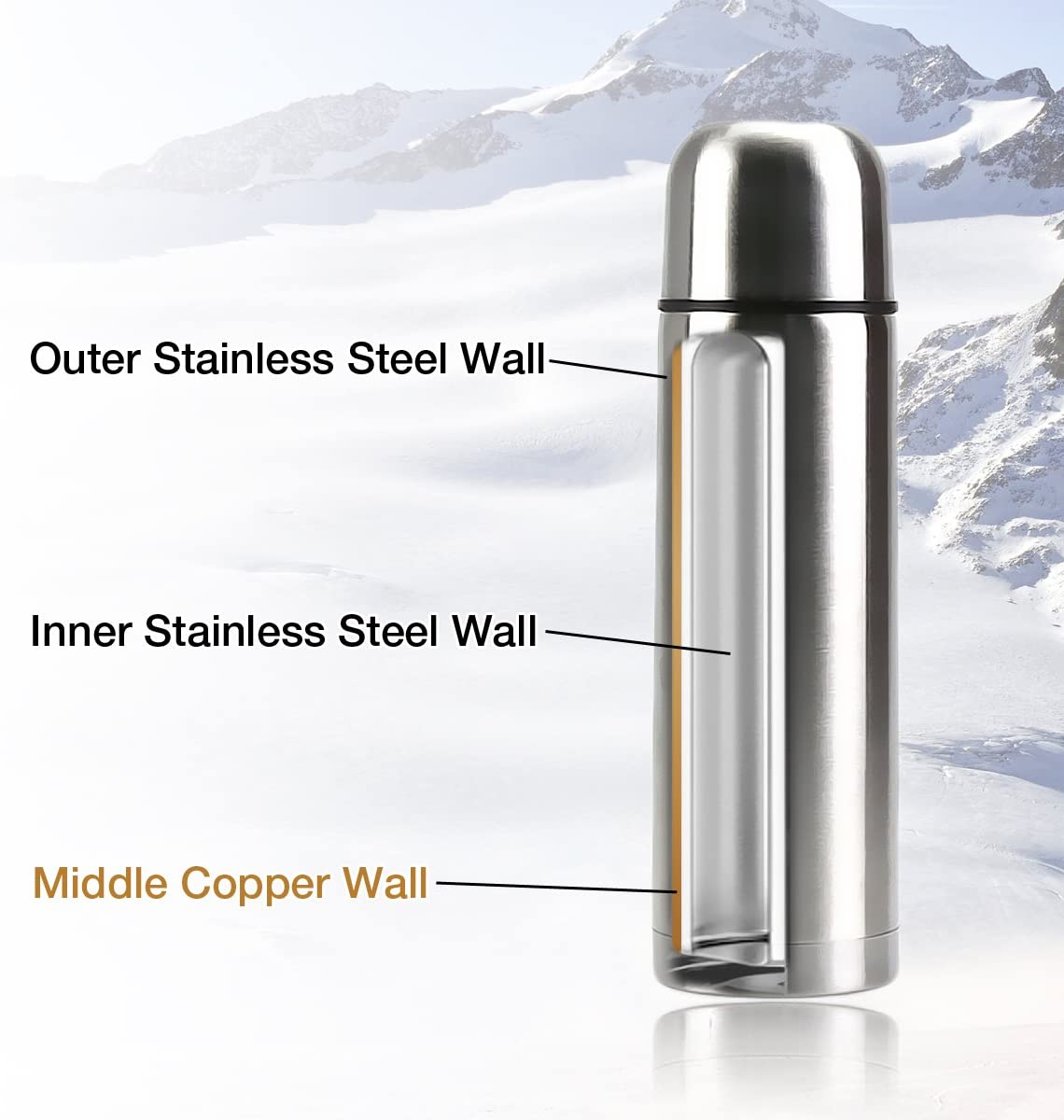 총알 플라스크는 모양과 열 절연 특성으로 유명합니다. 진공 절연되고 뚜껑이 새는 증거이며, 뜨거운 물을 12 시간 이상 유지하고 냉수를 16 시간 이상 유지할 수 있습니다. 입이 크고 얼음을 쉽게 가져갈 수 있습니다.