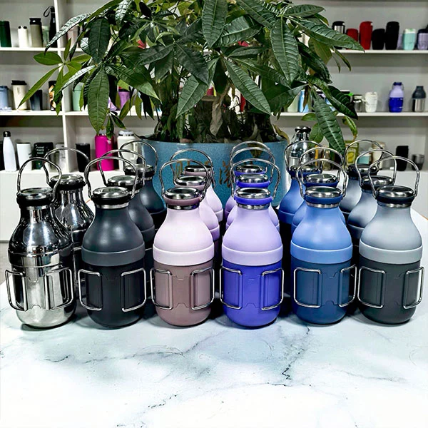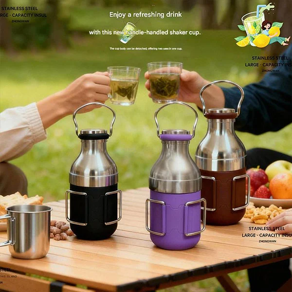 야외용 분리형 단열 병에는 손잡이가 있어 쉽게 운반할 수 있습니다.
