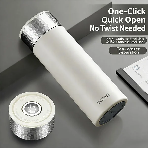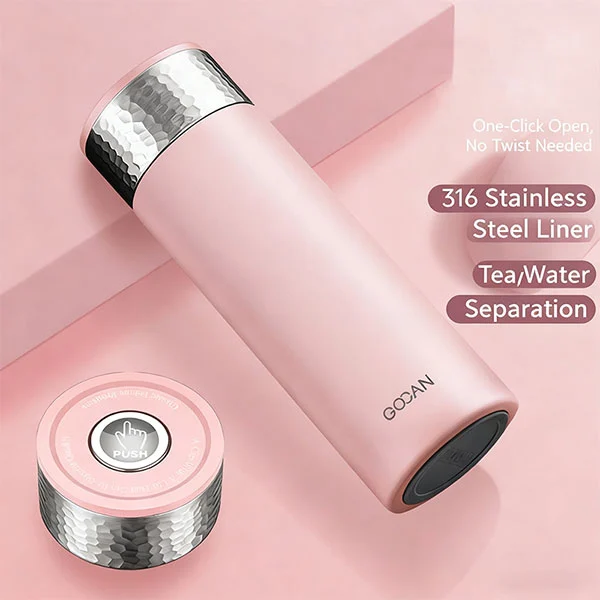 이중벽 및 진공 단열 처리되어 있으며 내부 부분은 316 스테인레스 스틸로 항균 효과가 뛰어나고 요소 방출이 적습니다. 외벽은 304 스테인리스 스틸로 전통적인 식품 등급 소재입니다.